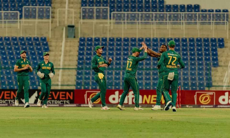 South Africa’s bowlers dominated proceedings, with Lizaad Williams starring with 3/35. Lungi Ngidi and Bjorn Fortuin chipped in with two wickets each, while Ottinel Baartman, Wiaan Mulder, and Andile Phehlukwayo claimed one apiece.